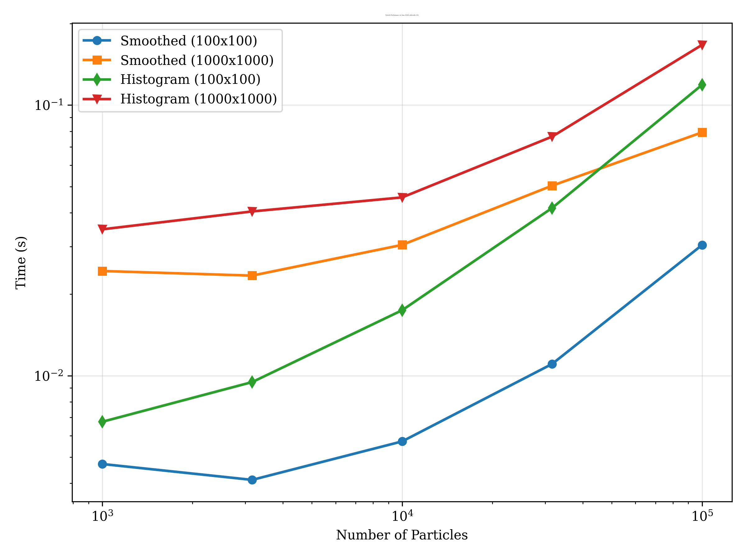 Imaging benchmarks include both smoothed and histogram-based methods at different pixel resolutions (100×100 and 1000×1000).
