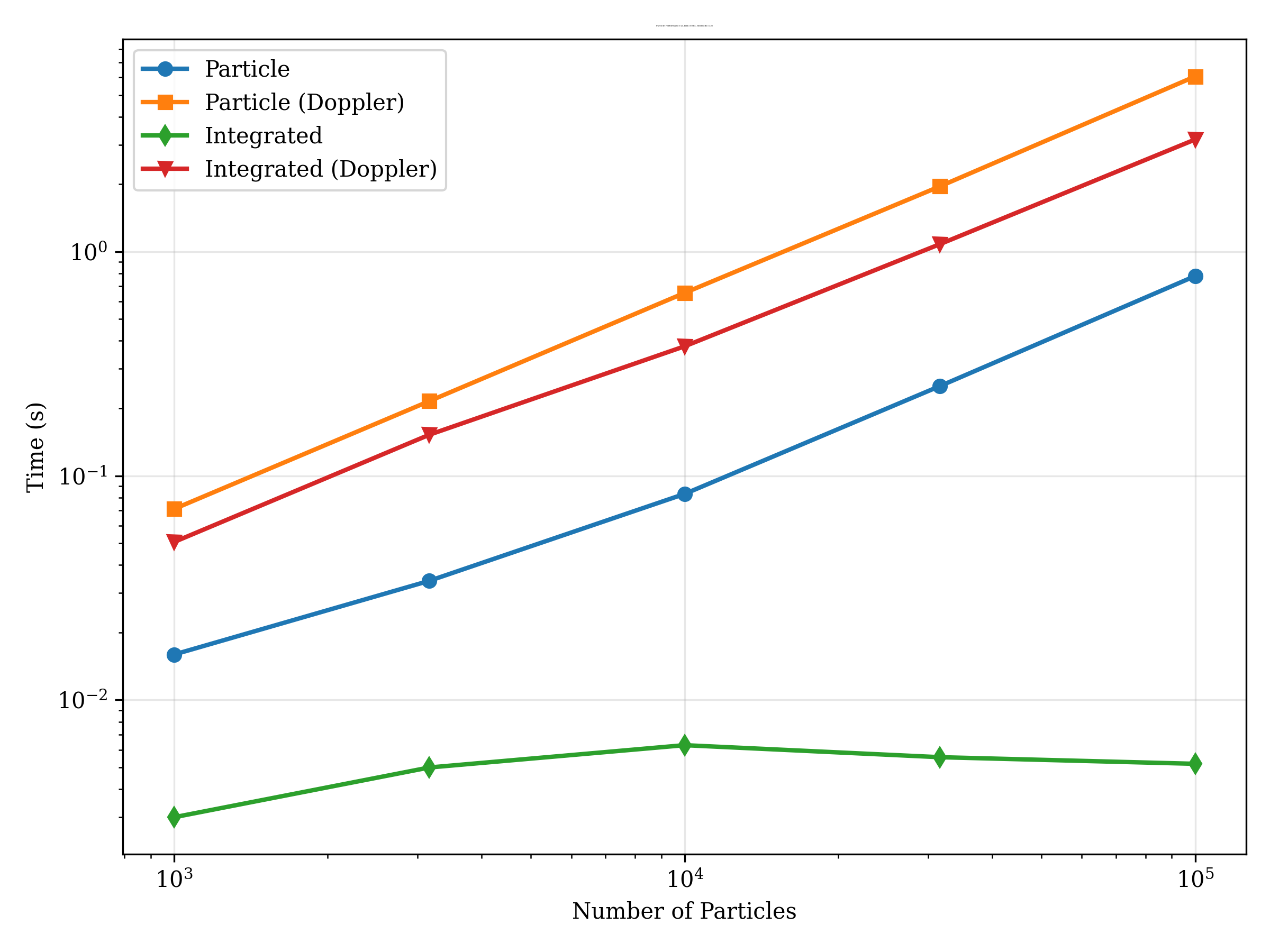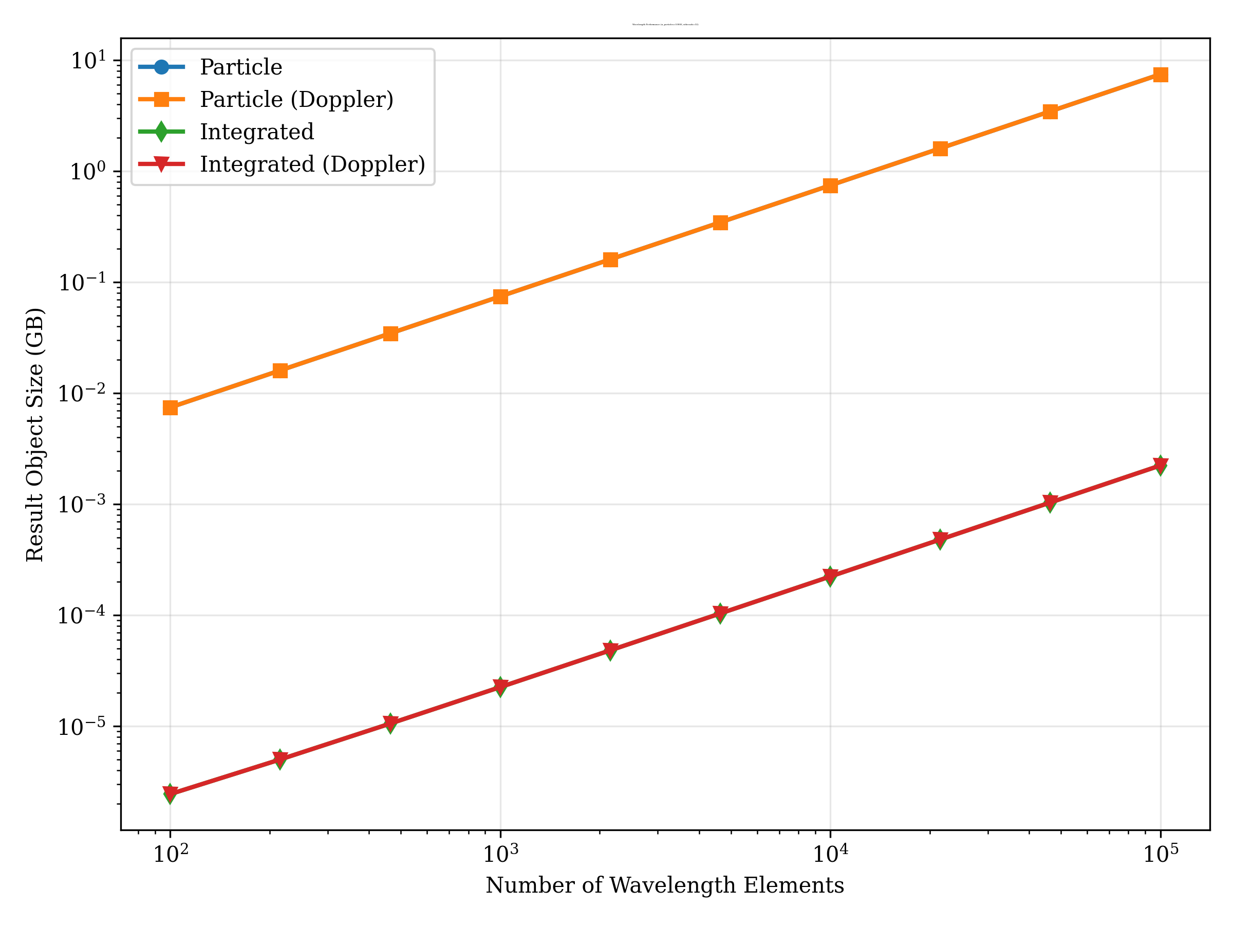 These benchmarks show how individual operations scale with problem size (number of particles or wavelength elements). These tests isolate specific operations to understand their computational complexity.